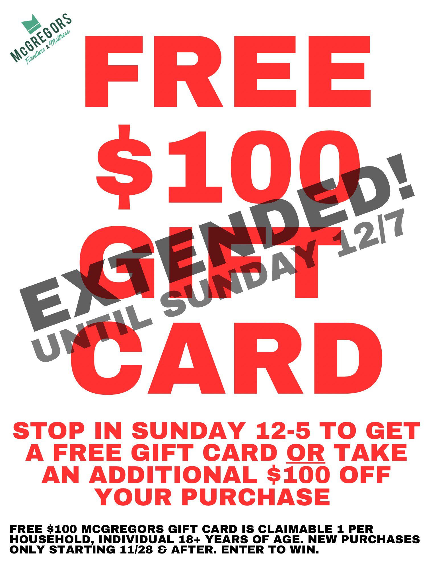 That storm last weekend was a lot, and we hope you stayed safe. To make things a little easier, we’re extending our gift card offer through this Sunday at 5 PM. Just stop into Marshalltown or Waterloo McGregors Furniture & Mattress and mention this email to receive your gift card.
