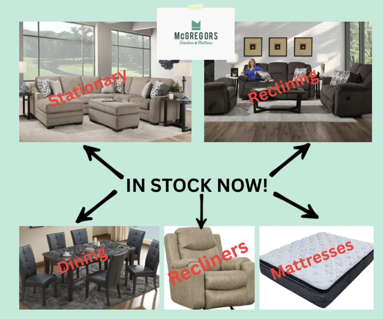 From stationary sectionals perfect for hosting the whole family to plush reclining sets made for unwinding after a long day, our living room pieces offer both durability and comfort. You’ll also find dining sets ready for everyday meals or holiday gatherings, individual recliners in a range of styles, and mattresses designed to give you a better night’s sleep—no long lead times, no backorders. Check out what’s in stock now!